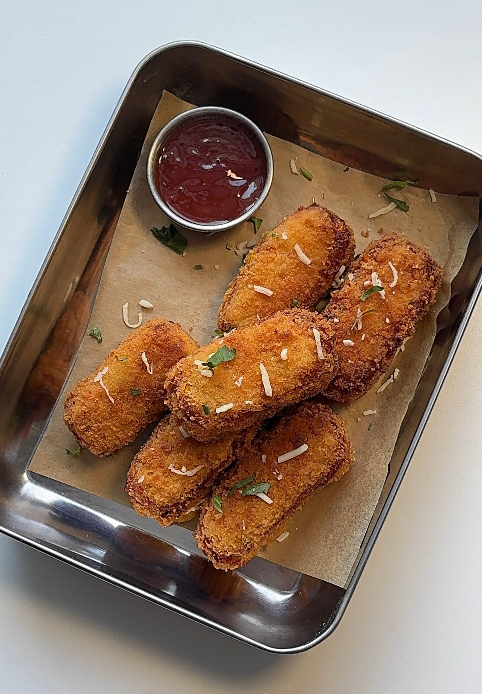 - Serve hot with ketchup, chilli garlic sauce, sweet chilli sauce, or garlic mayo.
