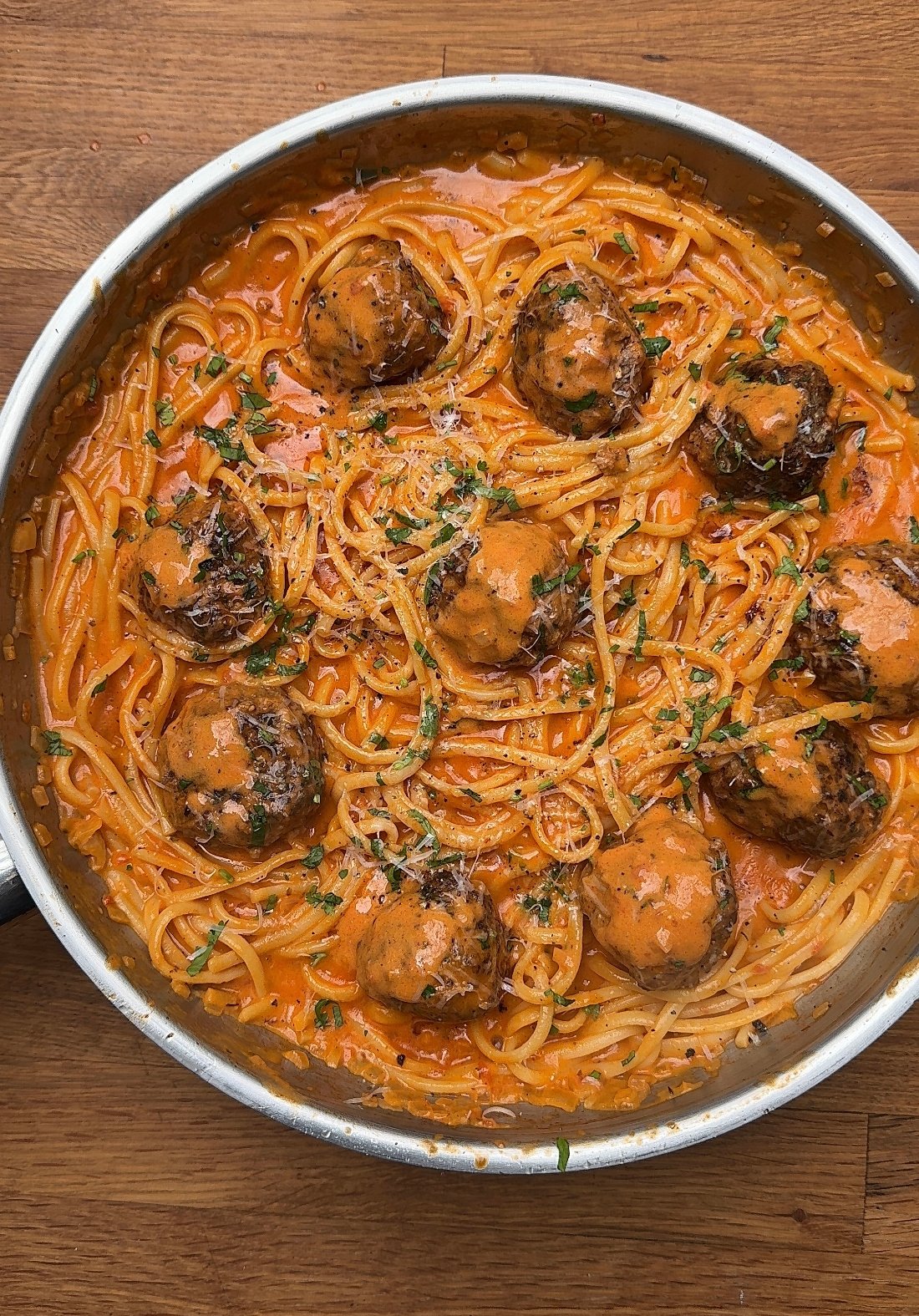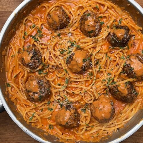 This is the kind of meal that feels special enough for guests but easy enough to make for a cozy dinner at home. The meatballs are tender and flavorful, and the creamy red sauce brings everything together in the most delicious way.