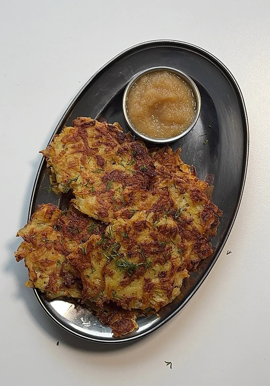 - Serve immediately with applesauce (traditional German style) or sour cream. Best enjoyed hot!