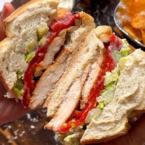 This Grilled Chicken Caesar Sandwich keeps everything you love about a classic Caesar: creamy dressing, crisp romaine, salty parmesan, soft bread but swaps fried chicken for juicy grilled chicken. It’s simpler, healthier, and perfect for everyday lunches or dinners.