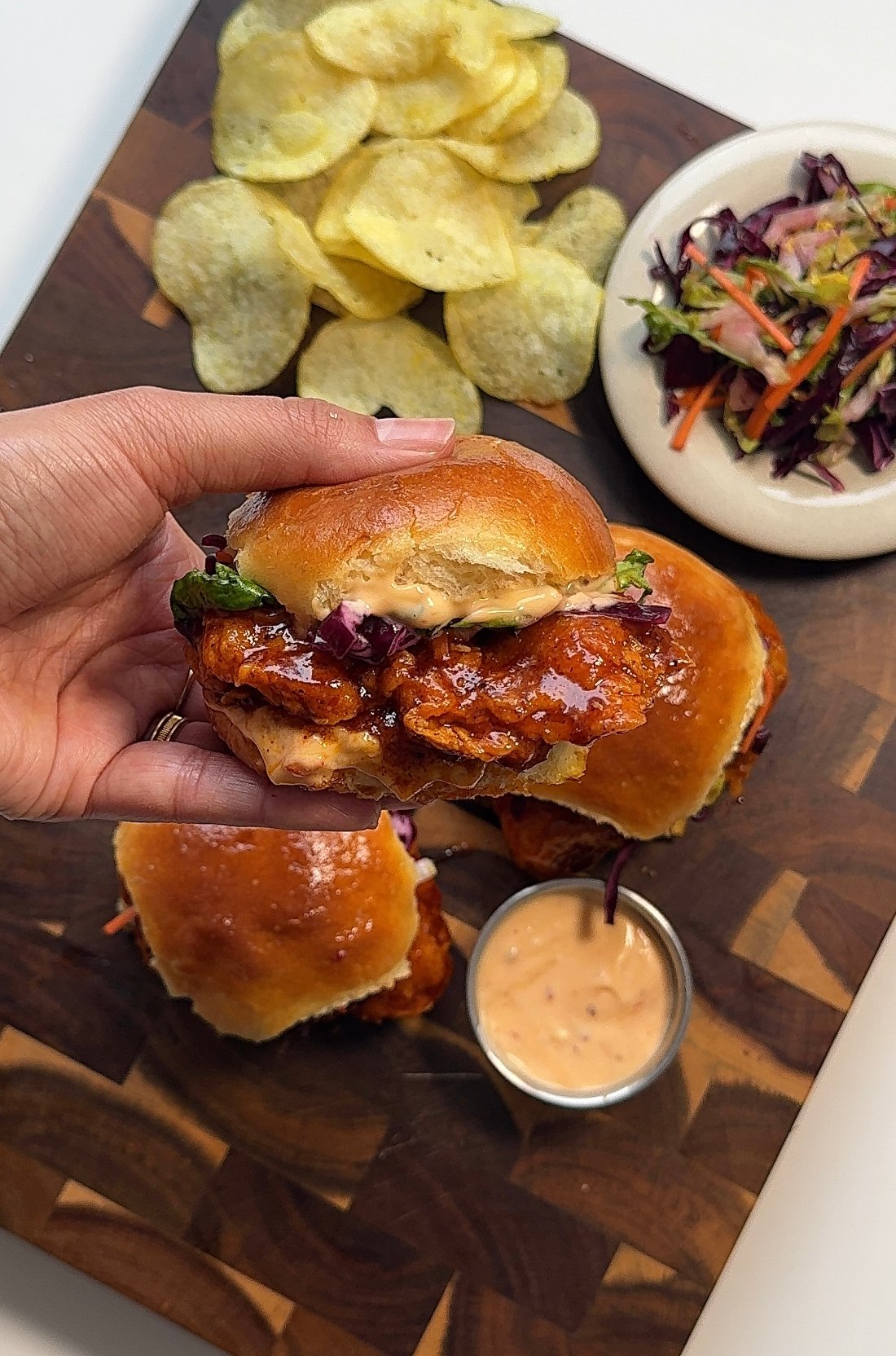Unlike traditional Nashville hot chicken, this version balances heat with sweetness, making it approachable while still delivering that signature spicy kick.