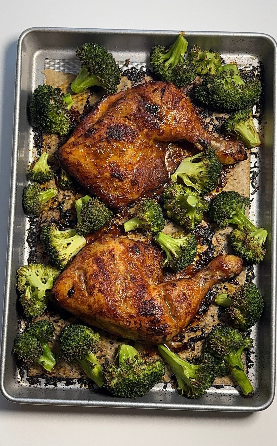 Juicy roasted chicken quarters are coated in a smoky paprika blend, then glazed with a sweet chilli soy sauce that caramelizes beautifully in the oven. Paired with roasted broccoli that soaks up all that flavor it’s simple, comforting, and packed with flavor.