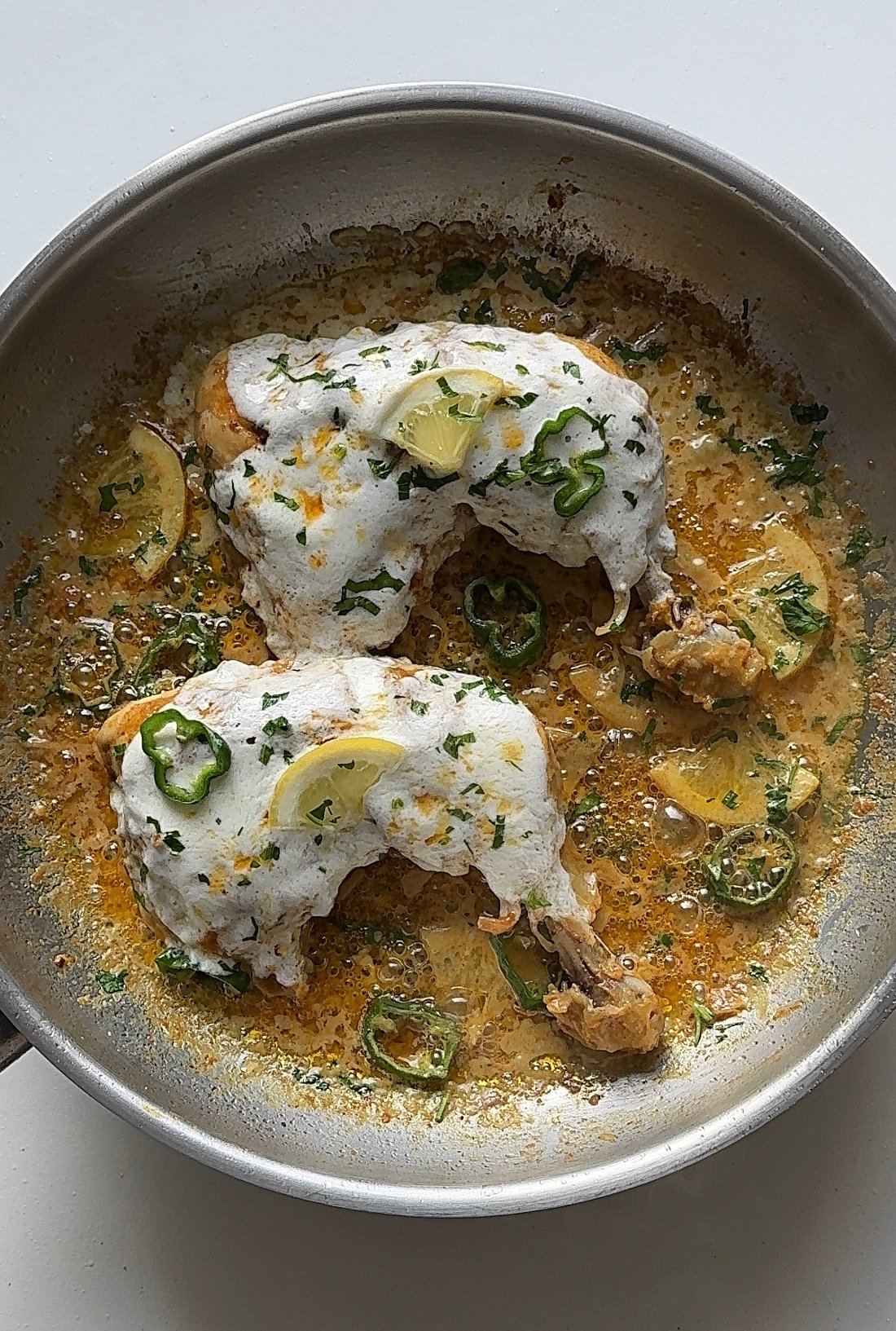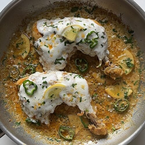 This Viral Iffa Chicken is spicy, creamy, tangy, and packed with flavor. Juicy chicken thighs are marinated in yogurt and warm spices, then pan-cooked in oil and butter until beautifully charred and tender. It’s finished with a rich garlic sauce made with boiled egg whites, cheese, garlic, milk, and cream for that signature creamy coating.