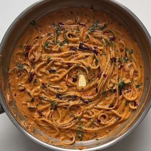 Let everything simmer together for 1–2 minutes so the pasta absorbs the flavours.